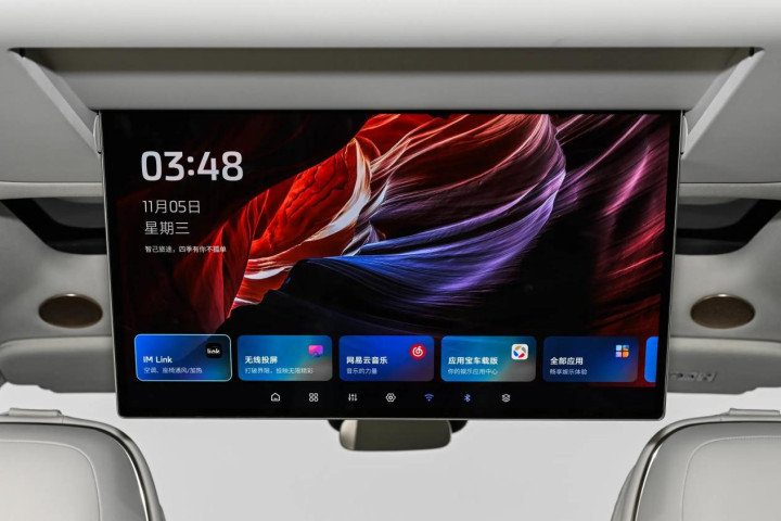 车内标配多块屏幕,包括27.1英寸液晶仪表和中控一体屏、15.6英寸副驾娱乐屏、HUD抬头显示、后排21.5英寸娱乐屏,搭载高通骁龙8295P芯片和IM AIOS系统,车机响应速度快,触控操作灵敏不卡顿,接入DeepSeek AI大模型,自然语言理解和执行能力强。可通过语音指令完成大多数车辆控制操作,提高驾驶安全性。配备随行生活管家功能,包括外卖助手、停车助手等,覆盖了多种日常生活场景,增加使用便利性。
