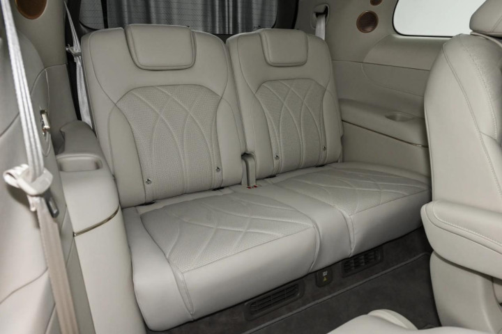 第三排座椅的坐垫深度达到515毫米,靠背支持电动调节,能调到143°躺姿,标配加热功能,座椅头部空间为955毫米,肩部空间为1308毫米,成年人乘坐不会感到压抑。第三排还配备独立空调出风口和Type-C充电接口,实用性和舒适性都没毛病。