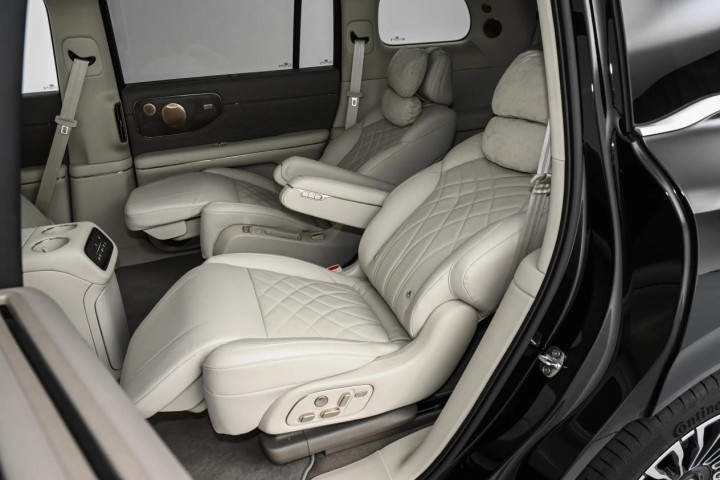 内饰奢华,车内采用高定配色与材质,如艺术木纹饰板、加尼叶金装饰、巴洛克渐变浮雕绗缝等细节,提升整体豪华氛围。搭载B&O音响系统,拥有25个扬声器与2080W功放,配合7.1.4声道布局,能带来沉浸式的听觉体验。